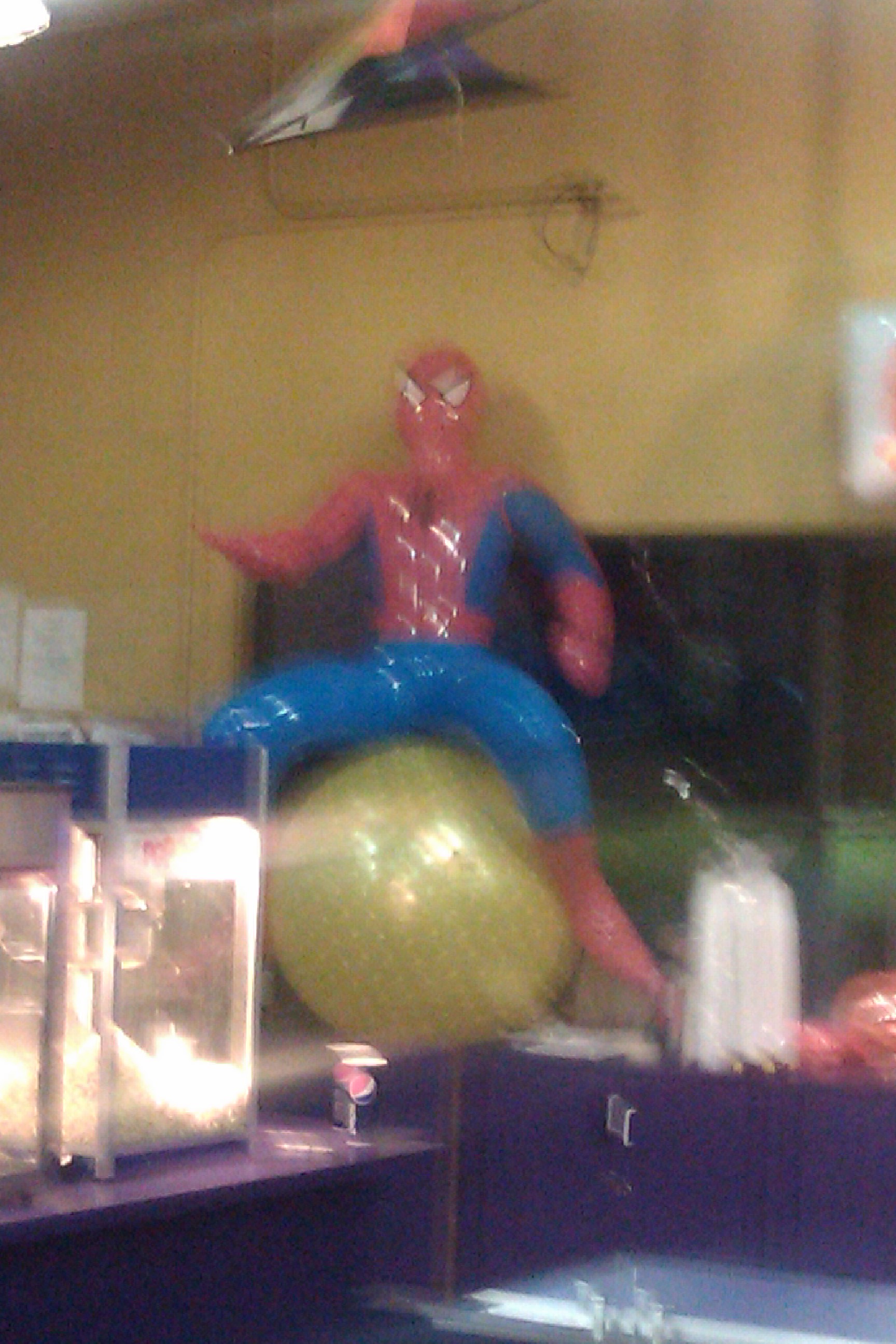 We went to Adventure Landing, which is a sort of local Chuck-E-Cheese’s with the video games that spit out tickets so you can trade them in for prizes. I wanted to win this giant Spider-Man sitting on a ball.